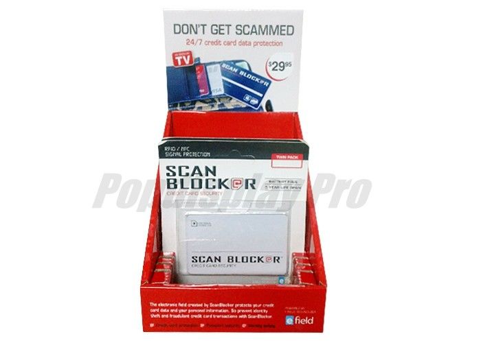 क्रेडिट कार्ड स्कैन ब्लॉकर के लिए पेपर कार्डबोर्ड काउंटर डिस्प्ले 12 स्लॉट के साथ 4C/0 लाल रंग में मुद्रित